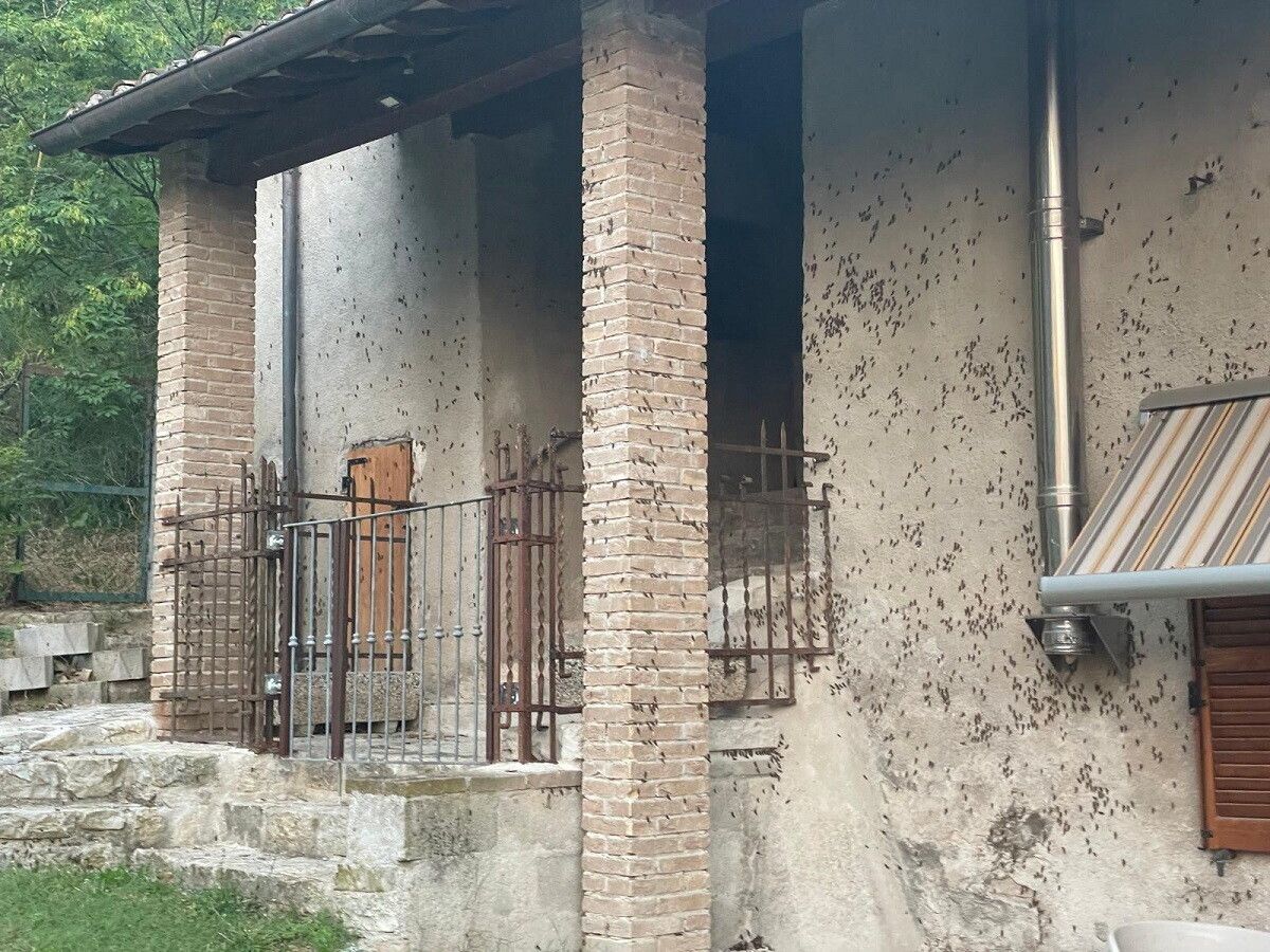Gianluca Rossi dell'Hostaria da Vigno di Cagli ha inviato le immagini dell'improvviso "assedio" degli insetti alla sua attività: "Inutilizzabili la bella veranda e la piscina"