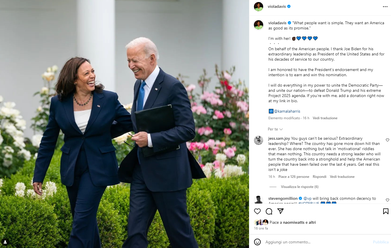 i post social Kamala Harris, il sostegno delle star di Hollywood