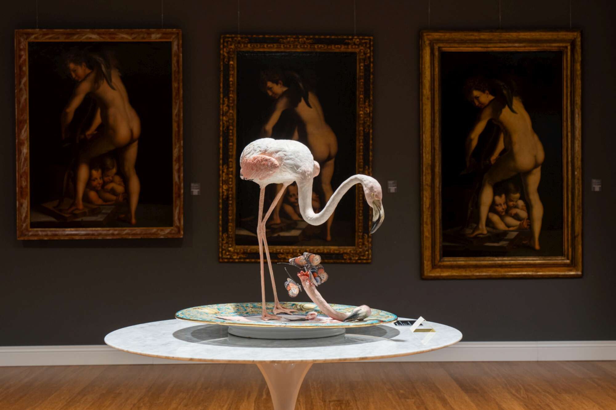Una tavola imbandita piena di stoviglie sporche e resti di cibo, sacchetti della spesa, cestini di immondizia, fenicotteri dal collo reciso popolato di farfalle, un tartaruga impigliata in una rete da pesca, scarpe logore e nuove forme di vita che emergono dalle macerie del disfacimento umano: "Non è quel che sembra", sono le sculture che compongono la mostra di Bertozzi & Casoni, fino al 7 gennaio al Labirinto della Masone a Fontanellato (PR).