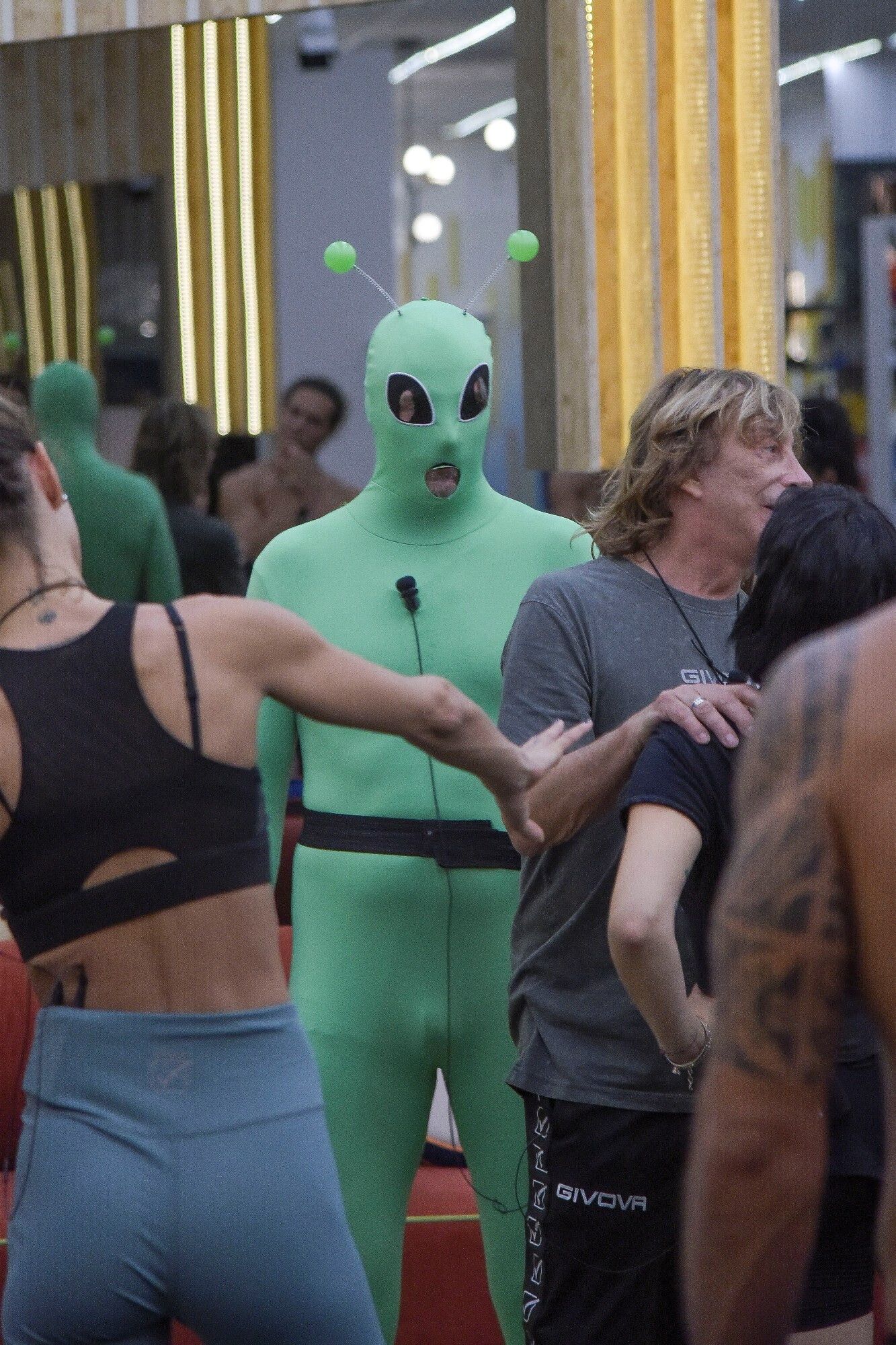 Nella Casa tiene banco il gioco dell'alieno. Un concorrente, travestito da alieno, deve essere ignorato da tutti gli altri concorrenti: vietate parlargli o anche assecondarlo con un gesto. Chi dovesse farlo diventerà lui l'alieno. E così dopo Helena e Calvani, è toccato a Tommaso, che per provocare gli altri inquilini si è messo a disturbare in maniera pesante, anche rovesciando dell'acqua addosso ai malcapitati.