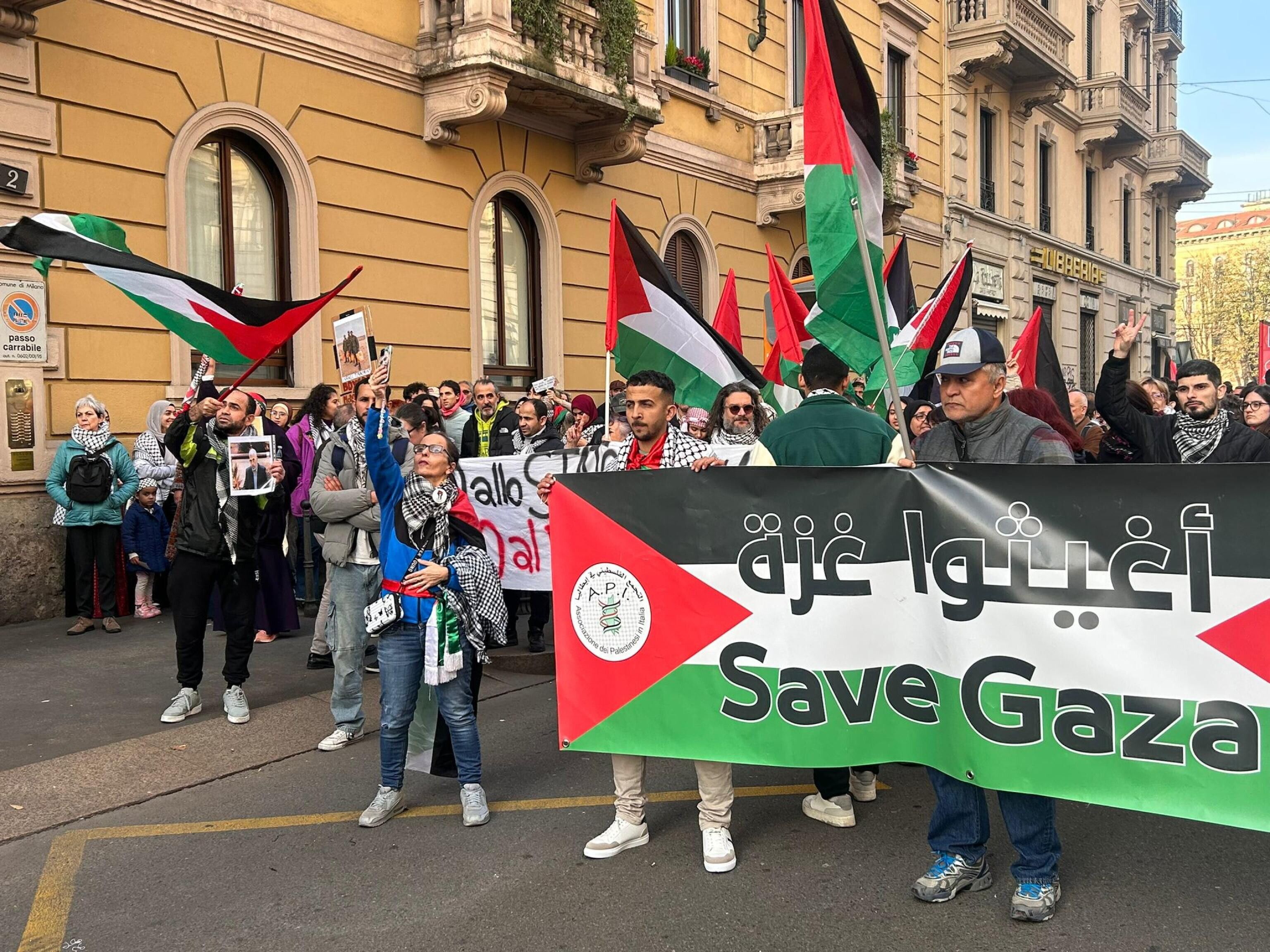 Milano, corteo pro Palestina: esposta anche una foto di Sinwar