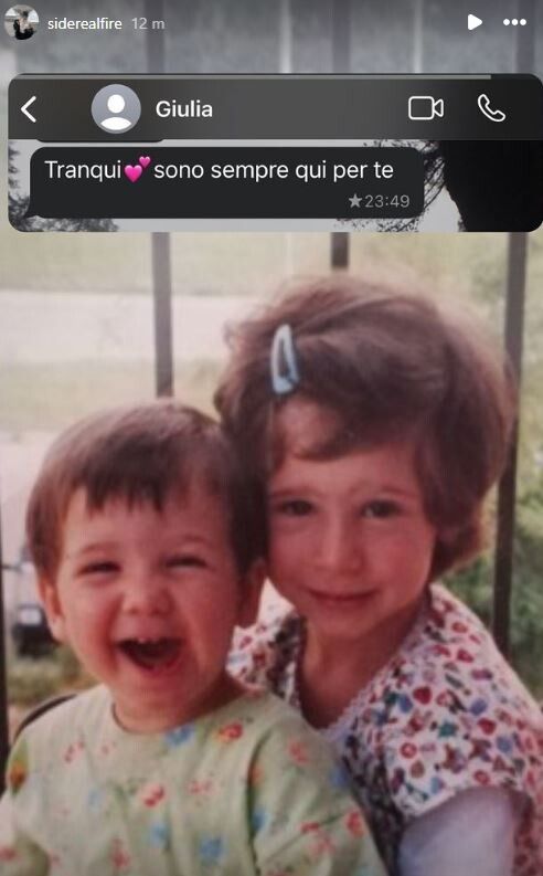 A un anno dall'uccisione della sorella, Elena Cecchettin ha pubblicato nelle storie di Instagram un messaggio WhatsApp di Giulia: "Tranqui, sono sempre qui per te". Ad accompagnare lo screenshot del messaggio una foto delle sorelle da piccole.