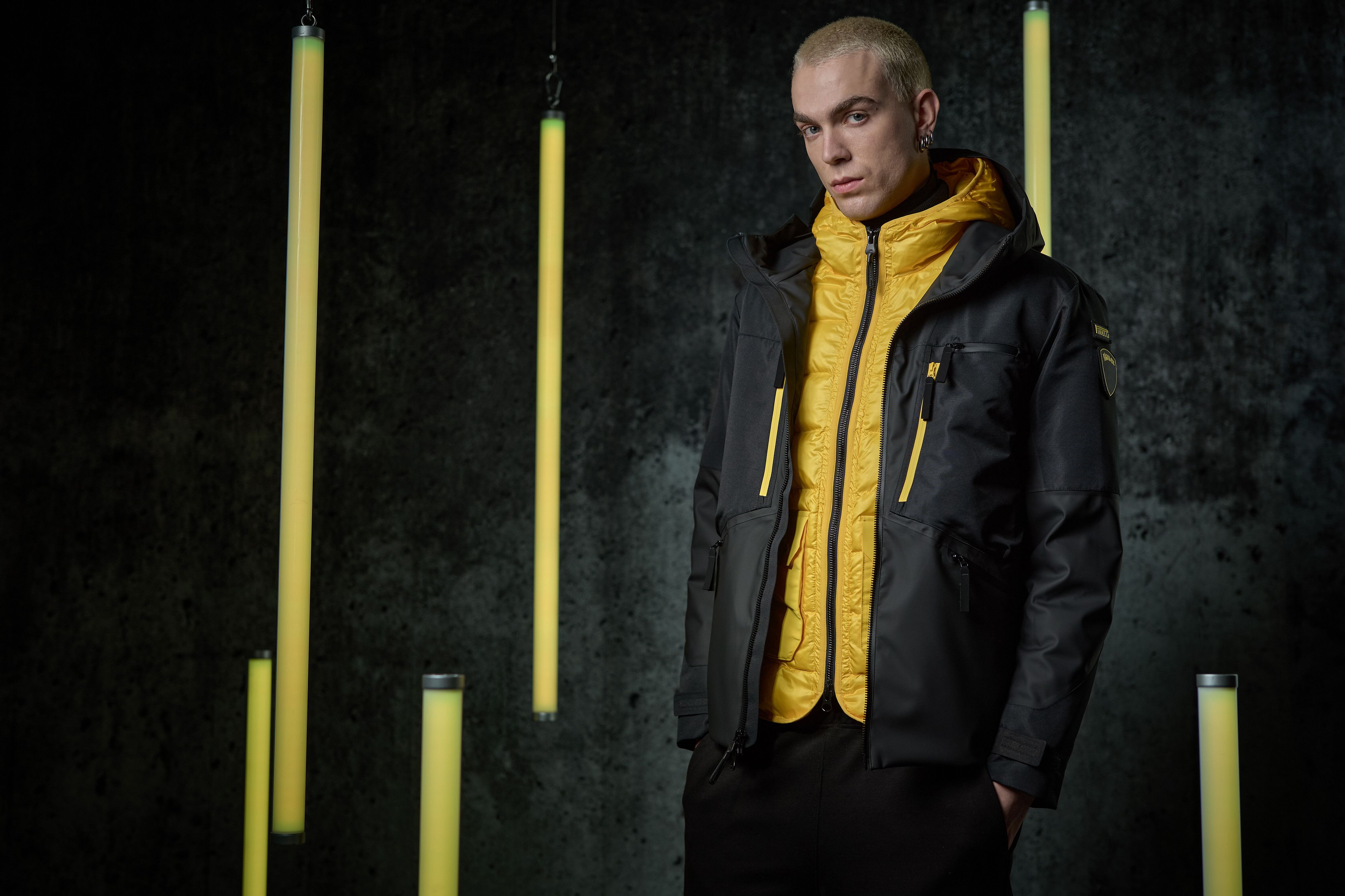 © Ufficio stampa|Blauer x Pirelli, The Performance Puffer: piumino in poliestere riciclato, impermeabile e antivento. Inserti in taslan, struttura tubolare senza cuciture
