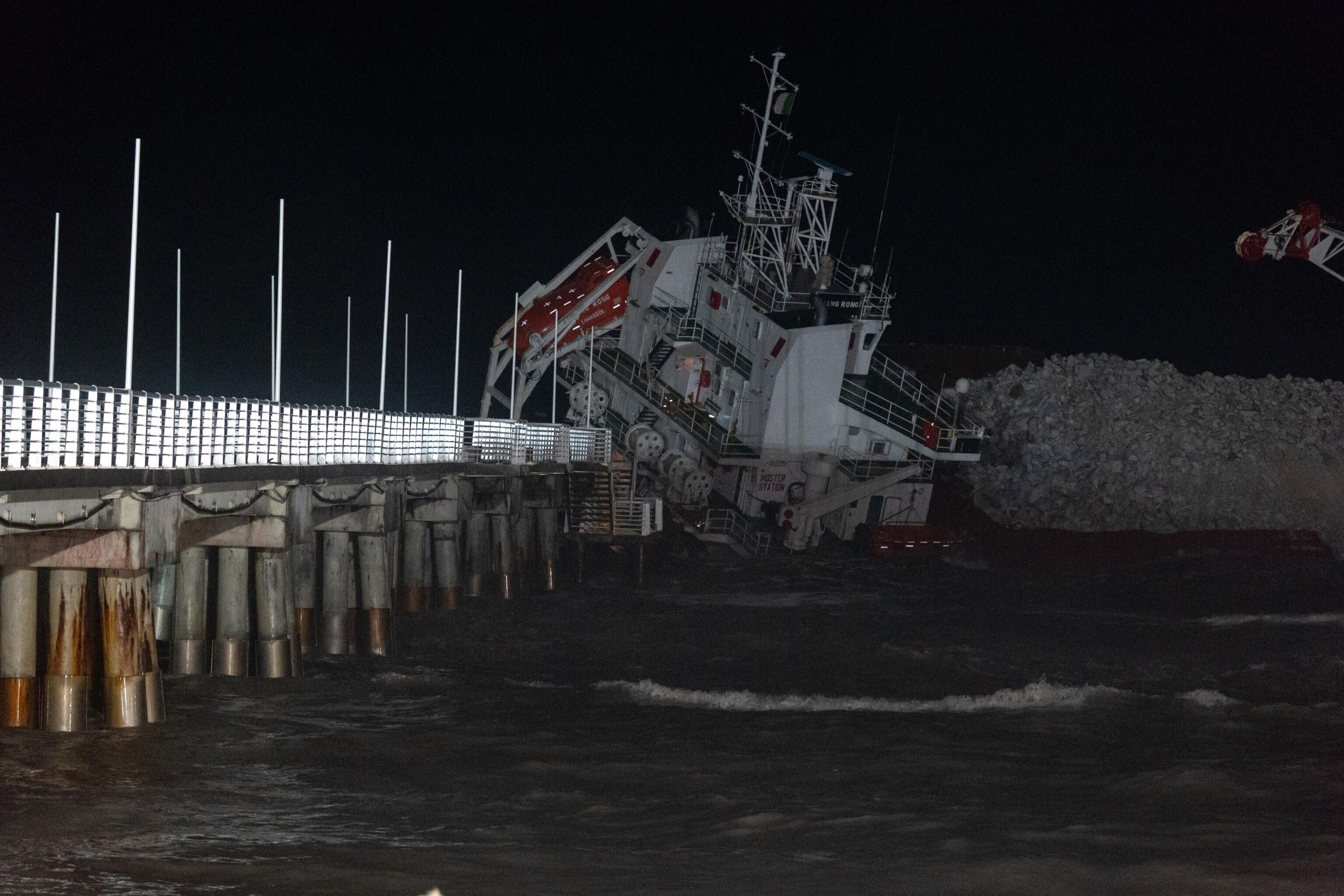 Maltempo in Toscana, nave di 100 metri finisce contro il pontile di Marina di Massa