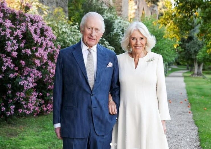 I reali inglesi posano per un ritratto a Villa Wolkonsky per il loro 20° anno di nozze