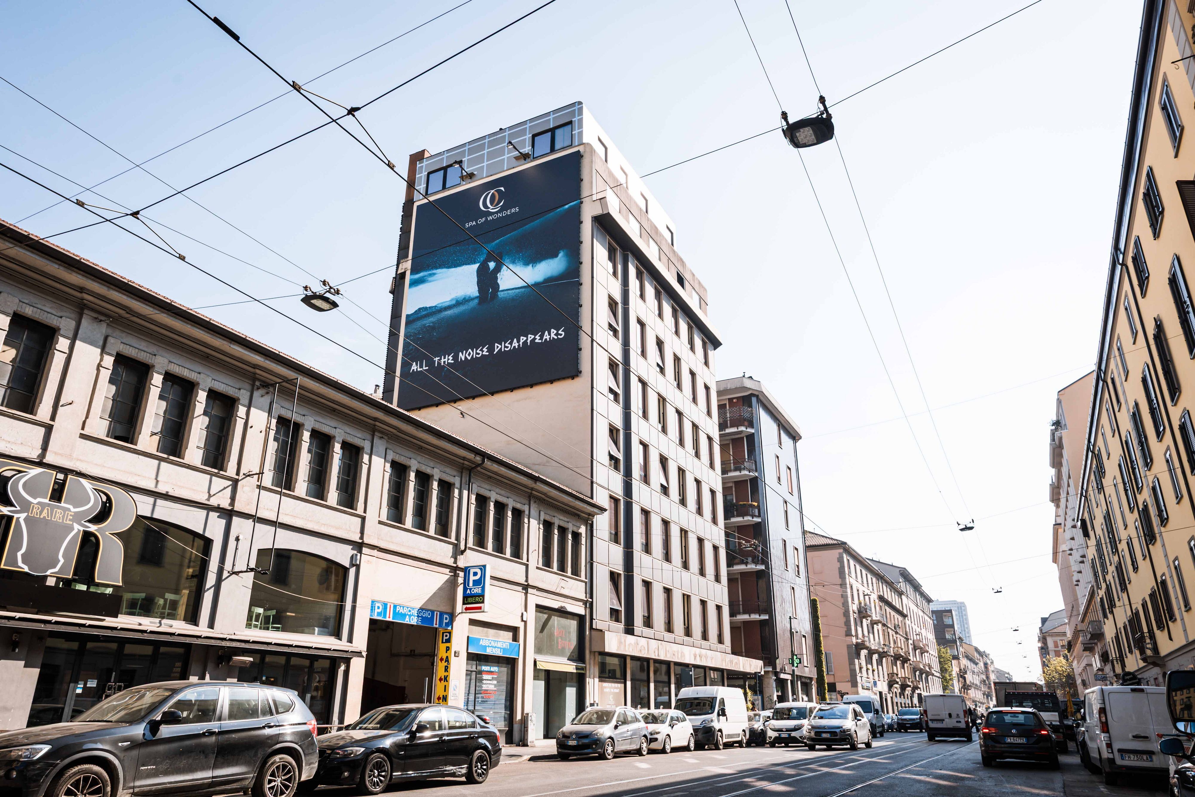 La Milano Design Week 2025 di QC si è conclusa con un'installazione dello street artist Greg Goya, realizzata a più di 30 metri di altezza sulla facciata del nuovo smart hotel QC Room Milano Porta Romana: su un’immagine di un bacio sotto l’acqua che scende dolce, scrive: "All the noise disappears". Un messaggio che utilizza il linguaggio tipico della gen Z ed è anche la campagna spring-summer del gruppo.