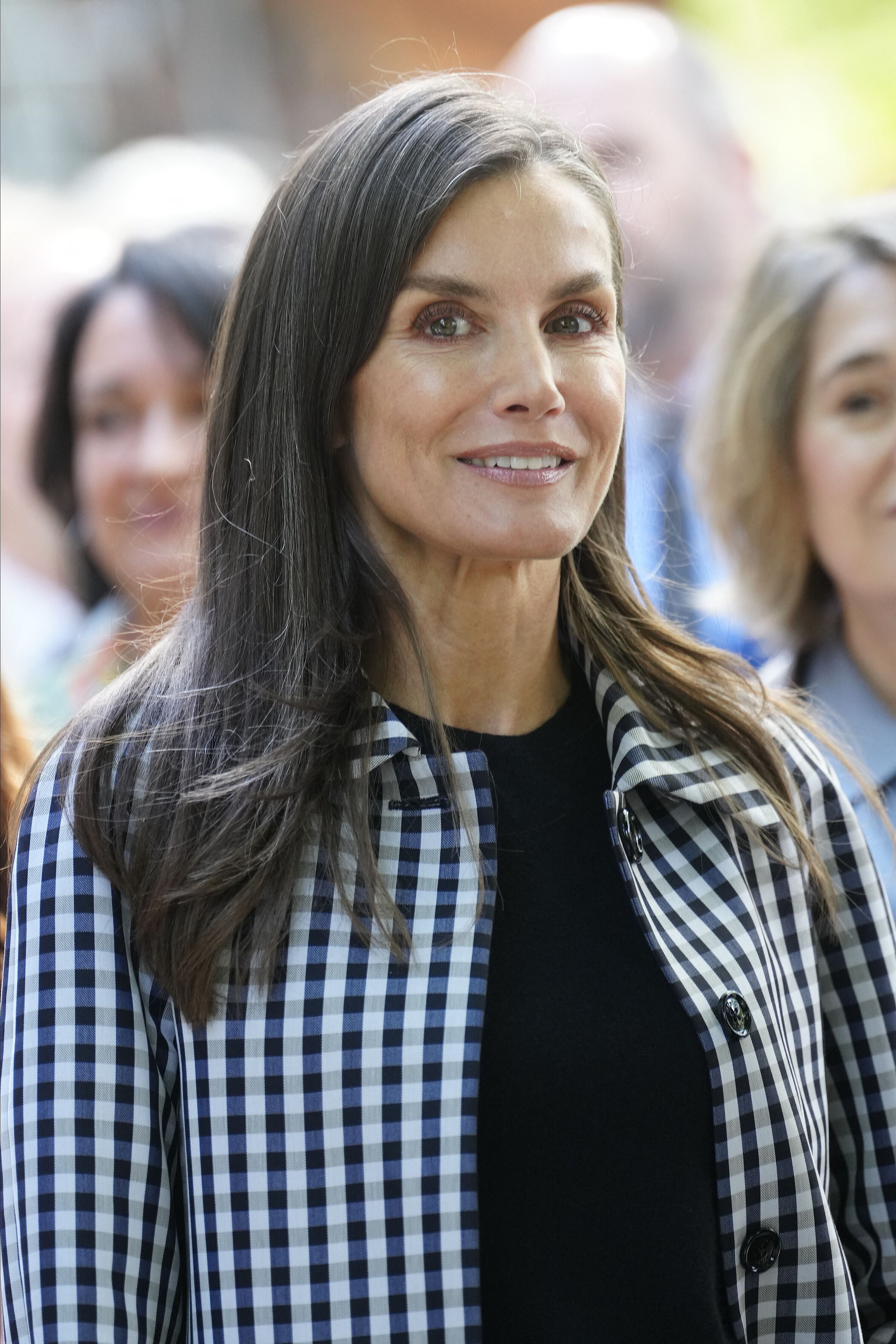 © IPA|Lo stile di Letizia di Spagna: cappottino leggero Vichy, tracollina nera e scarpe Mary Jane per la sua visita alla Cuesta de Moyano, la fiera permanente del libro di Madrid