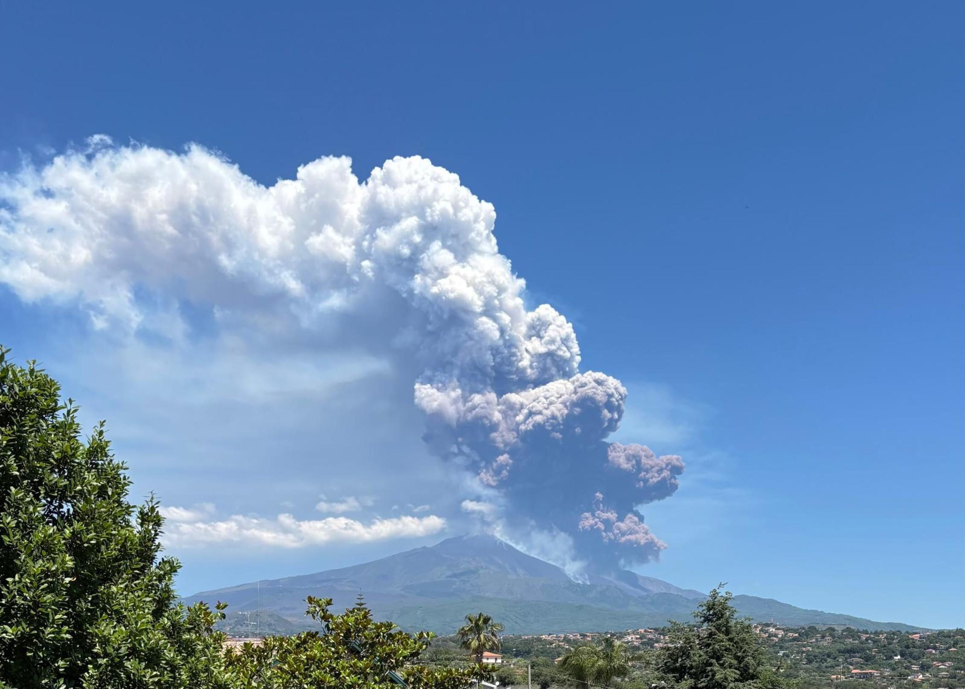 Una consistente nube eruttiva, alta almeno alcuni chilometri, sovrasta l'Etna. A provocarla sarebbe stato un flusso piroclastico probabilmente prodotto da un collasso di materiale del fianco settentrionale del cratere di Sud-Est