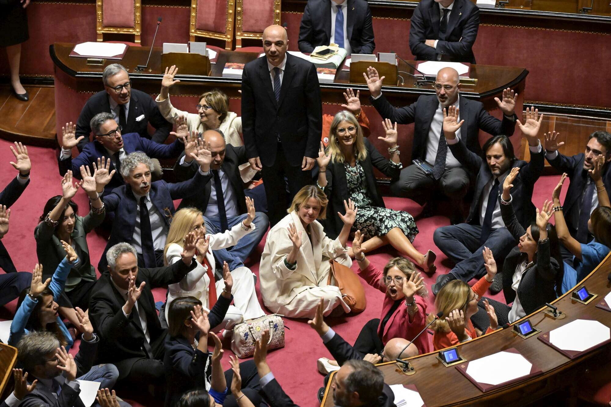 I senatori di Pd, M5s e Avs si sono seduti davanti ai banchi del governo urlando "Vergogna vergogna"