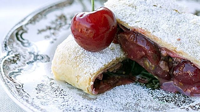Srotolate la pasta sfoglia, riempitela con il composto, spolverate con la cannella e richiudete lo strudel sigillando bene i bordi.