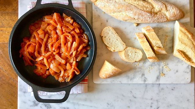 La ricetta prevede l’uso dei pelati ma potete utilizzare anche salsa di pomodoro. Per un piatto più rustico affettate grossolanamente le cipolle e non dimenticate il pane!