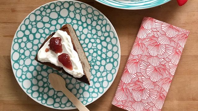 A colazione potete servire la torta con una cucchiaiata di yogurt greco e confettura.