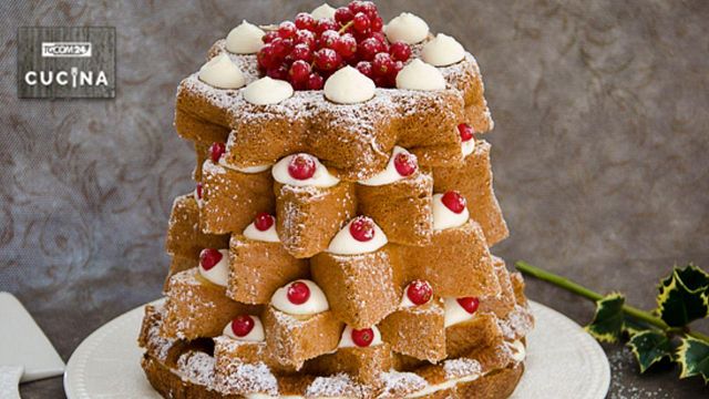 L'albero di pandoro farcito è un dolce goloso e scenografico realizzato con stelle di pandoro alternate a strati di crema di ricotta. L'albero di pandoro farcito è perfetto per la tavola delle feste, arricchito dal ribes e da una cascata golosa di zucchero a velo. Se preferite, potete impreziosirlo con altri frutti di bosco, decorarlo con le scaglie di cioccolato o gli zuccherini dorati.