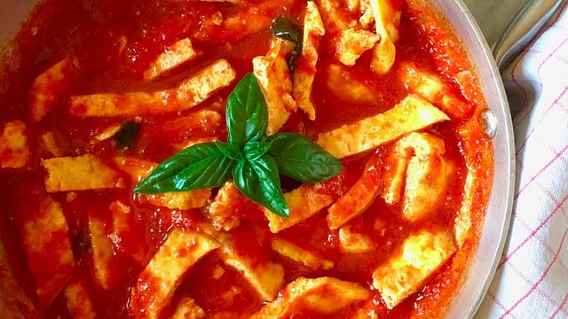 Quando alla tavola dei contadini la carne era un bene di lusso, per fortuna, non mancava la fantasia. Le uova in trippa nascono così, come camouflage della carne che non c’è anche se potrebbe sembrare di si.