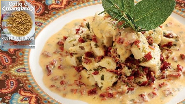 TRASFERITE il fondo di cottura in una padella e fate cuocere pochi minuti a fuoco moderato, mescolando di tanto in tanto, quindi unite i pomodori secchi e il prezzemolo e cuocete 5 minuti. Aggiungete il pollo alla salsa allo yogurt, lasciate cuocere altri 5 minuti, regolate di sale. Guarnite con salvia e rosmarino freschi.