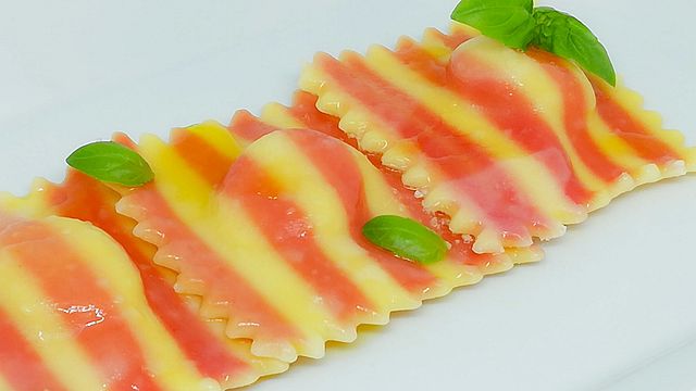 Per il Word Pasta Day vi voglio regalare una ricetta davvero speciale che non arriva da me, ma da mio papà, Angelo Rimoldi, un vero appassionato di pasta fresca. Si tratta di ravioli bi colore, preparati con una sfoglia colorata con barbabietola e zenzero e farciti con un ripieno di formaggi e speck. La ricetta è facile, ma un pochino elaborata, quindi dovrete prendervi un po' di tempo per la lavorazione, mai il risultato vi ripagherà di tutta la fatica fatta.