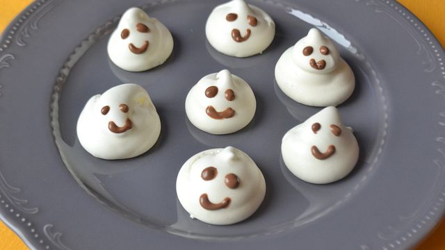 Sono croccanti bocconcini dolci dallo sguardo tenero, i fantasmini di meringa aromatizzata al limone non possono certo mancare tra le mostruose leccornie di Halloween!