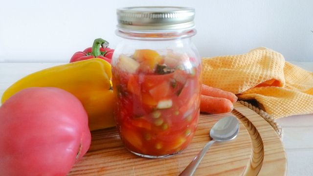 Dividete il tutto nei 4 vasetti a cui dovrete aggiungere 50 ml di brodo vegetale. Mescolate con un cucchiaio, pulite il bordo e chiudete bene i vasetti.