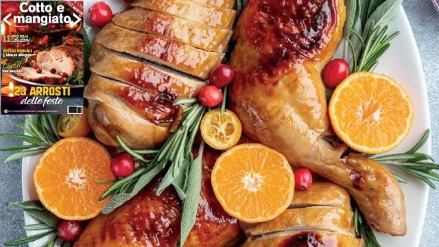 La carne arrosto in tutte le sue forme è un appuntamento che si rinnova specialmente nei giorni di festa. Si ha più tempo da dedicare alla cucina, la fantasia ha modo di spaziare e scegliere gli ingredienti più sfiziosi. I petti di anatra arrosto all'arancia sono una ricetta che dovremmo realizzare più spesso. Profumatissimi grazie all'arancia e al liquore, colorati allegramente dai cranberries sono una vera delizia per gli occhi e per il palato. Questa e tante altre idee speciali potrete trovarle nel numero di Cotto e mangiato magazine di dicembre.