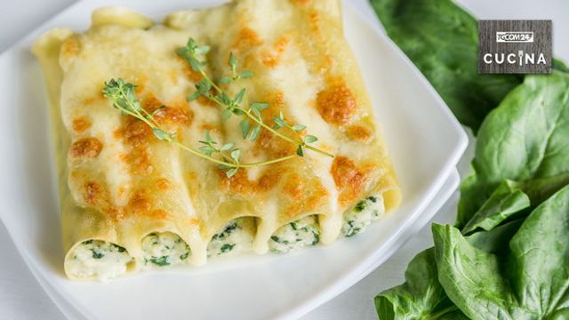 Infornate i cannelloni al pesto a 200 gradi per circa 30 minuti, dovranno essere ben dorati in superficie. Sfornateli, lasciateli assestare per qualche minuto quindi serviteli.