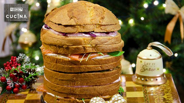 Formate gli strati: un velo di pesto, straccetti di burrata e noci tritate. Una base di panna acida, fette di salmone e rucola. Uno strato di mousse di prosciutto (frullate gli ingredienti insieme) con radicchio tritato.