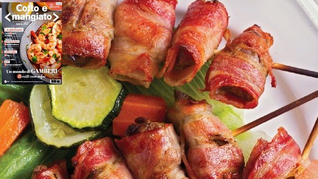 Infilzate gli involtini con uno stuzzicadenti (o uno spiedo se preferite formare una sequenza di involtini).