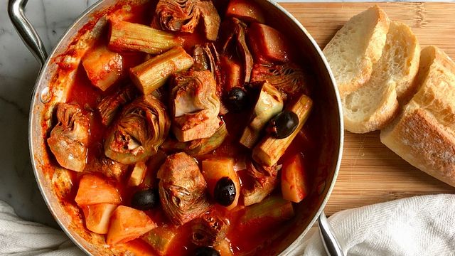 A fine cottura, aggiustate di sale e olio e servite lo stufato ben caldo.