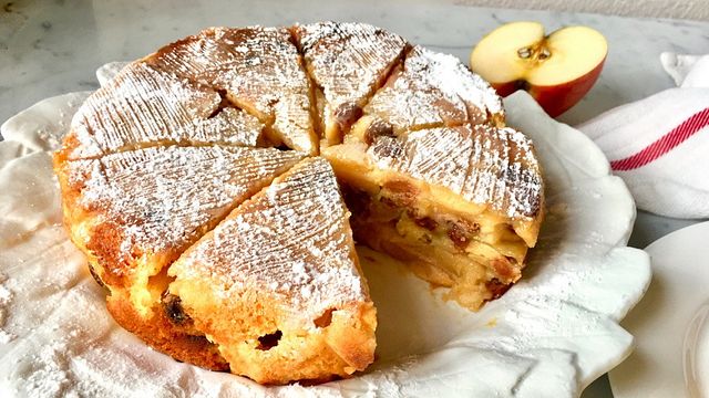 Questa esce dalle pagine del ricettario di famiglia e la sua particolarità è che nonna usava tante mele, e uvetta, per un quantitativo modesto di impasto. Praticamente si tratta di versare un po’ di pastella su una cassetta di frutta lasciando che trovi da sola la strada tra i pezzetti di mela. Durante la cottura, a contatto con le mele, l’impasto cuocerà restando soffice e morbido neanche fosse una crema.
