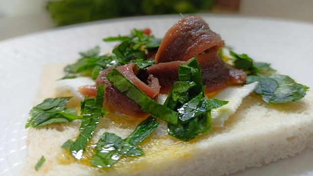 Posizionate le rose di acciughe sui crostini e servite.