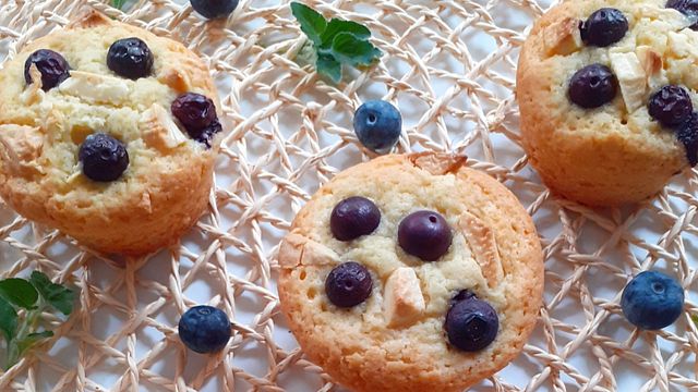 Prima di infornare mettete ancora su ogni muffin qualche mirtillo e delle scagliette di cioccolato bianco. Cuocete a 180 gradi per 20 minuti circa.