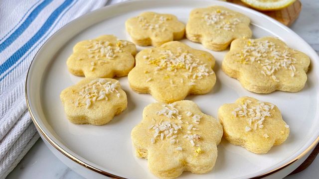 Per decorare i biscotti, in una tazzina da caffè mescolate ½ cucchiaino di miele, o di sciroppo d’acero, con poca acqua. Spennellate la superficie dei biscotti e, man mano, spolverate con cocco grattugiato o scorza di limone.