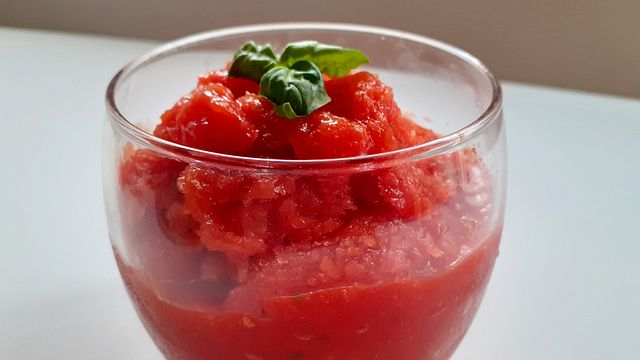 Voglia di qualcosa di fresco e originale? Ecco il sorbetto è sempre la soluzione giusta, poi se lo prepariamo al pomodoro potremmo gustare un dolce non dolce da accompagnare a pietanze salate. Che ne dite? Ho provato questa ricetta e mi ha molto colpito: è raffinato nella sua presentazione ed è un ottimo accompagnamento per piatti di carne, per i formaggi e le verdure.