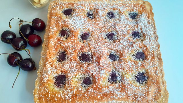 Bucherellate con una forchetta la base. Versiamo all’interno della frolla la crema frangipane fino ad arrivare al bordo. Infine mettiamo sopra le ciliegie.