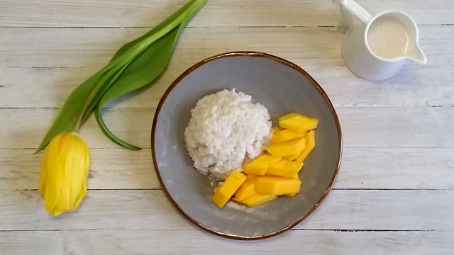 Questo dolce viene preparato con il riso glutinoso, un riso tipico delle campagne thailandesi. Viene chiamato sticky perchè quando è cotto diventa particolarmente appicicoso.