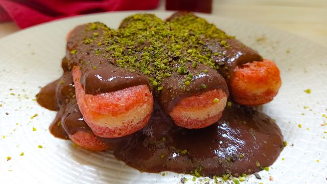 Ed ecco rispolverata la ricetta di un dolce antico che ho trovato tra i vecchi libri di Pellegrino Artusi. Il dolce Torino una delizia di savoiardi inzuppati nell’Alchermes e inondati di crema al cioccolato, il tutto arricchito con i pistacchi.