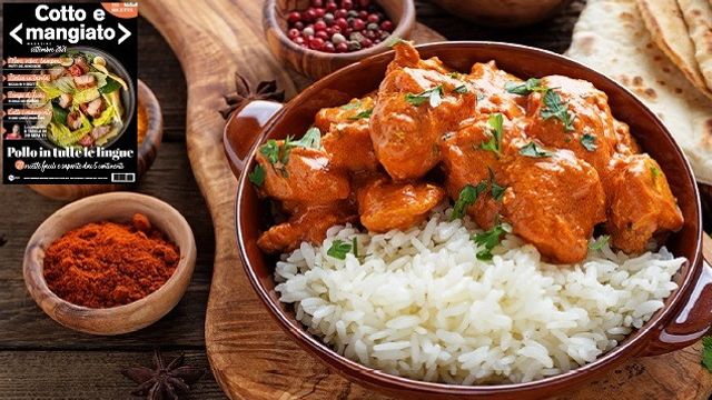Nel numero di settembre di Cotto e mangiato magazine trovate tantissime soluzioni per portare in tavola con fantasia uno degli alimenti più amati: il pollo. Leggero, digeribile, ricco di proteine si lascia cucinare anche dalla mano meno esperta garantendo sempre ottimi risultati. La ricetta che vi proponiamo, il Chiken tikka masala, ha un'unica controindicazione: è troppo buono. La salsa speziata, deciderete voi quanto e come, ha un profumo ed un gusto davvero inebrianti e farà capitolare anche il palato più indeciso.