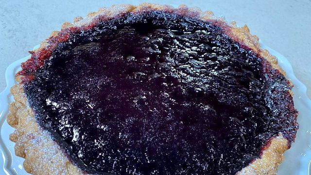 Stendete la frolla e mettetela in teglia su carta forno, farcite con 300 grammi di confettura (nella ricetta alle ciliegie). Infornate a 180 gradi per 40 minuti. A piacere, prima di servire, spolverizzate con dello zucchero a velo.
