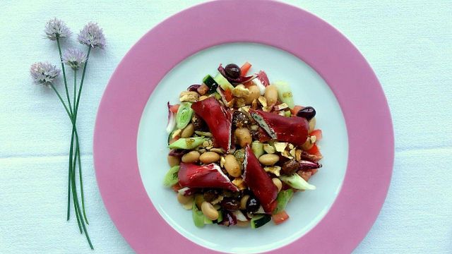 Questa insalata è un vero e proprio piatto unico perchè contiene tanta verdura, frutta secca, formaggio, bresaola e legumi. Una ricetta sostanziosa e sfiziosa molto semplice da preparare. Un perfetto piatto estivo per quando si ha poco tempo per cucinare ma non si vuole rinunciare a qualcosa di sano e gustoso.