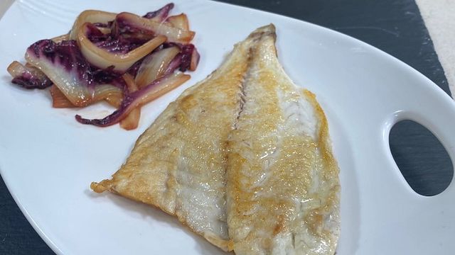 Prendete due filetti di pesce bianco, rosolate uno spicchio di aglio in padella e mettete a cuocere il pesce sul lato della polpa, girate poi sul lato della pelle e completate la cottura. Attendete qualche minuto e sfumate con del vino bianco.
