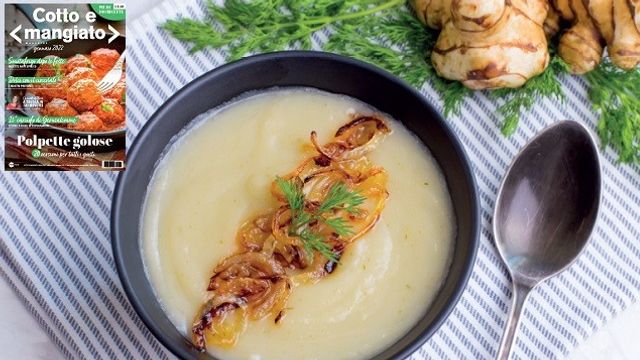 Nel numero di Cotto e mangiato magazine di gennaio trovate molte idee da sperimentare con un ingrediente che sembra una patata ma sa di carciofo: il topinambur. Ricco di proprietà, buonissimo sia crudo in insalata, che cotto al forno, in padella o fritto è perfetto nelle minestre come la Vellutata di topinambur con cipolla caramellata. Un comfort food perfetto per cremosità e gusto agrodolce con la presenza delle cipolle caramellate che regalano un tocco particolare all'insieme. Tutta da provare per farsi conquistare.