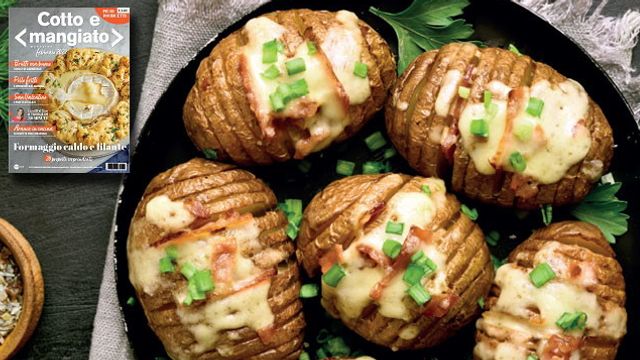Le patate sono un prezioso dono della natura: buone economiche e versatili, rendono ogni piatto una festa. Specialmente se parliamo della ricetta delle Hasselback potatoes con scamorza e bacon contenuta nel numero di febbraio di Cotto e mangiato magazine dove possiamo trovare tante proposte in cui il formaggio arricchisce, accompagna e profuma ogni piatto dove presenzia. In questo caso si accompagna ad altri ingredienti molto golosi rendendo questa ricetta davvero uno spettacolo di sapori!