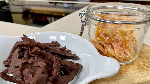 Versate l’acqua e lo zucchero in un pentolino e portate a bollore. Mescolate delicatamente e fate sciogliere completamente lo zucchero ottenendo uno sciroppo. Aggiungete le scorze e fate cuocere a fiamma bassa per circa 30 minuti facendo evaporare l’acqua. Scolate le scorze e lasciatele asciugare e indurire in una pirofila prima di servire con una leggera spolverata di zucchero. Per una versione più golosa, immergete le scorze d’arancia nel cioccolato fuso fatto sciogliere a bagnomaria e ponetele a raffreddare su una teglia rivestita con carta forno.