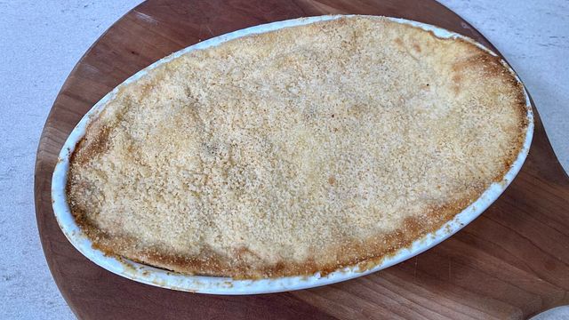 Distribuite uno strato di gruyère o emmental abbondante, uno strato di crema di cavolfiore e un nuovo strato di pane in cassetta. Completate con uno strato di crema di cavolfiore, pangrattato e fiocchetti di burro. Infornate a 200 gradi per 20 minuti.