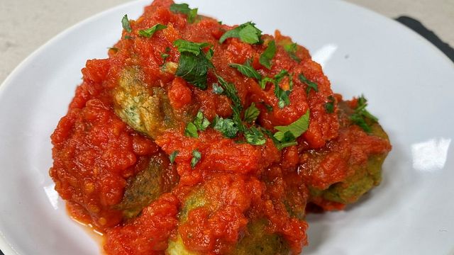 Frullate poi le erbette con 500 grammi di polpa di pesce bianco, 2 uova, le patate e 40 grammi di formaggio grattugiato. Aiutatevi con del pangrattato e formate delle polpette con il composto preparato, lavoratele con la farina e friggetele in abbondante olio Evo. Una volta rosolate, mettetele su carta da cucina, salatele e aggiungetele alla salsa di pomodoro preparata poco prima.