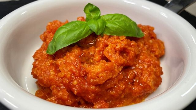 Aggiungete poi il pane e allungate al bisogno con brodo o acqua. Nel frattempo sbattete 4 uova con 100 grammi di pecorino. A fuoco spento aggiungete il composto in padella e amalgamate. Coprite qualche minuto affichè le uova cuociano con il calore della pappa e servite. Impiattate aggiungendo un filo di olio a crudo e qualche foglia di basilico.