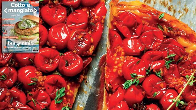 Esistono molte diverse tipologie di pomodori: ognuna ha il suo gusto e sapidità e per ciascuna è più indicato un diverso impiego. In questa scenografica ricetta, la dolcezza il colore e la grandezza dei pomodorini, garantiscono un risultato di sicuro effetto sia per quanto riguarda il gusto che per quanto concerne la presentazione finale. Colore, sapore e allegria in tavola grazie ad un prezioso ingrediente base di cui troverete tante altre ricette nel numero di giugno di Cotto e mangiato Magazine.