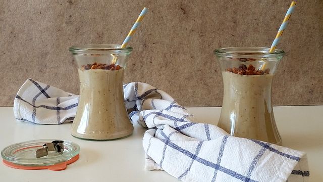 Passato il tempo estraete dal frigo il bicchiere con la bevanda e versate la banana, le mele e frullate fino a rendere il composto omogeneo.