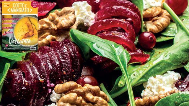 Un vero toccasana questa insalata di barbabietole con spinaci, noci, ribes e ricotta. Facile e veloce da preparare, ha come ingrediente principale un ortaggio a radice dal sapore zuccherino ricco di fibre, sali minerali e vitamine. In associazione poi agli spinaci, alle noci, al ribes e alla ricotta è un piatto gourmet delicato e gustosissimo, perfetto anche come ricarica energetica. Questa ed altre fantasiose ricette potrete scoprirle sul numero di novembre di Cotto e mangiato Magazine.