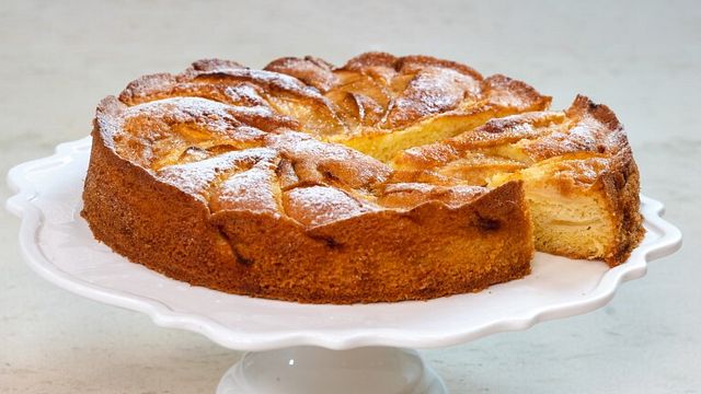 Sbucciate e tagliate a fettine 4 mele e irroratele con il succo di 1/2 limone. Lavorate 4 uova con 160 grammi di zucchero e 120 grammi di burro morbido. Il composto non dovrà risultare particolarmente spumoso ma dovrà essere lavorato bene. Aggiungete la scorza grattugiata di 1/2 limone, 160 grammi di farina in più riprese in modo da non formare grumi. In ultimo aggiungete 1/2 bustina di lievito.