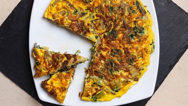 Sbattete 5/6 uova con 30 grammi di pecorino grattugiato. Quando le patate sono quasi pronte, mettete nella padella dove cuocerete la frittata le cipolle che farete appassire bene. Alle cipolle aggiungete le coste, le patate e le uova. Amalgamate bene gli ingredienti e una volta cotto un lato, girate la frittata.